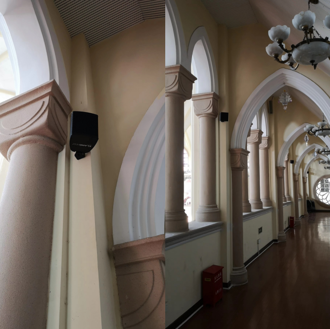 主教堂采用两组可变指向音箱KLANGFEST evo-pbs 2000通过改变音箱指向角来解决了由于房间构造和装修效果对扩音系统的架设预期造成的障碍。