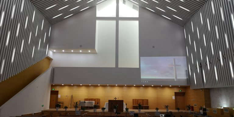 主教堂采用两组可变指向音箱KLANGFEST evo-pbs 2000通过改变音箱指向角来解决了由于房间构造和装修效果对扩音系统的架设预期造成的障碍。